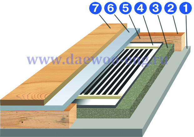 3. Установка тёплого пола DAEWOO ENG в пол на несущих деревянных
